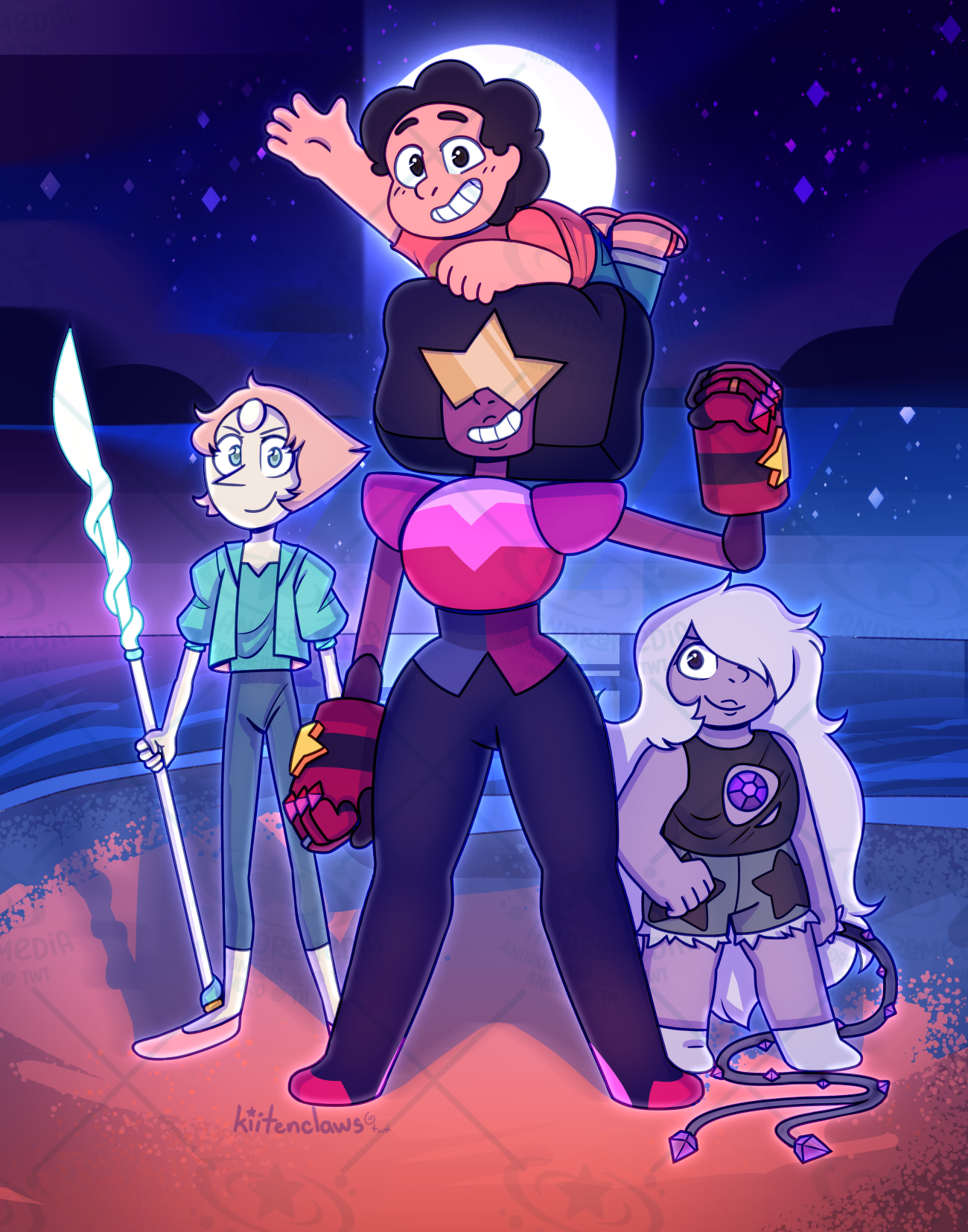 A print of Steven, Garnet, Amethyst, and Pearl from Steven Universe